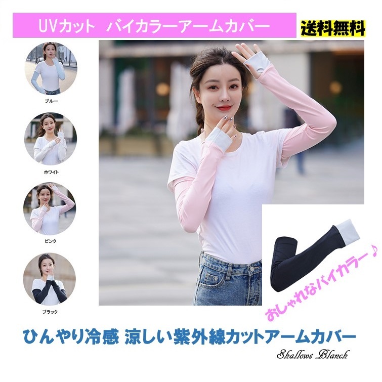 アームカバー ロング丈 冷感 UV手袋 指穴あり バイカラー