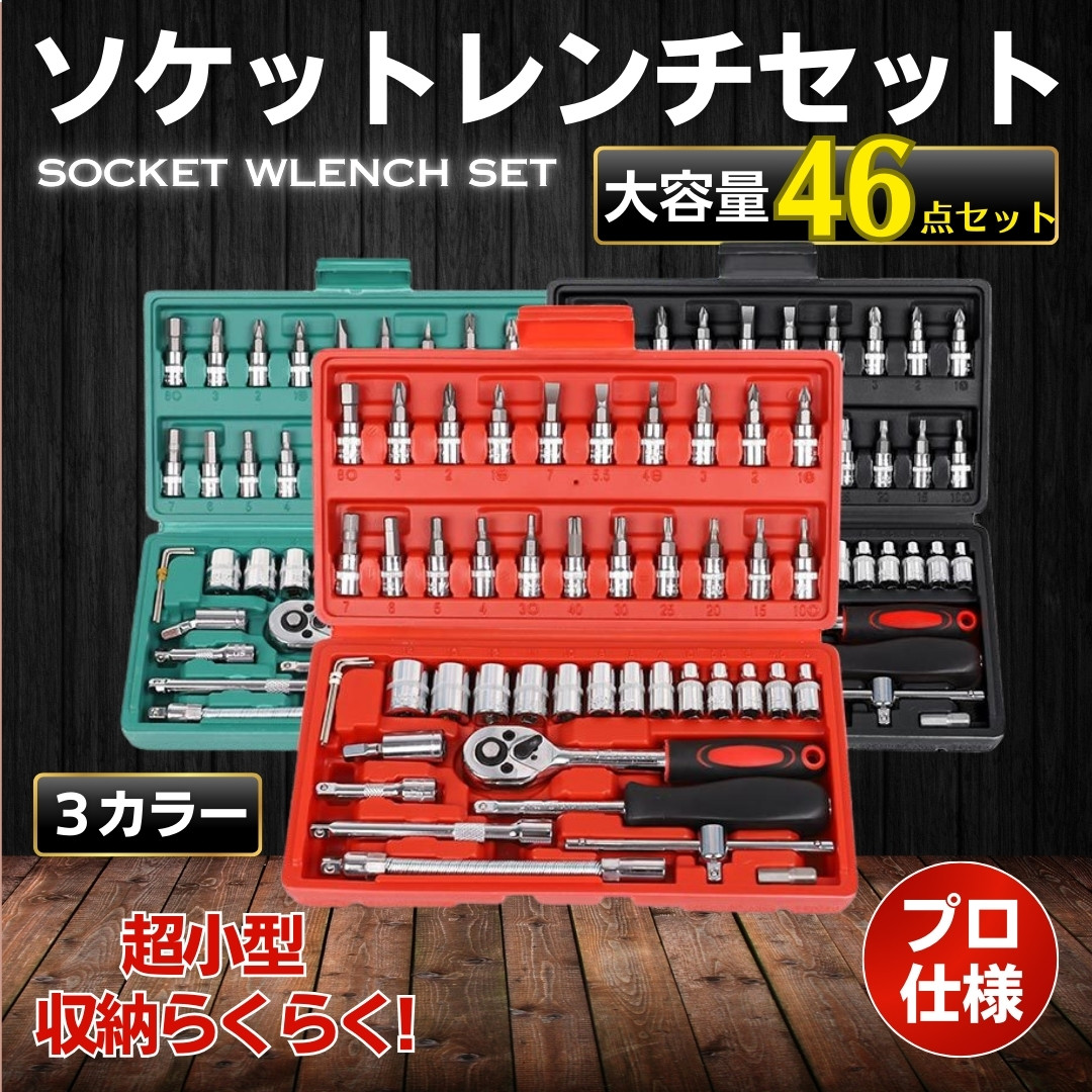 ソケットレンチ セット 工具 46点 工具セット ドライバー ビット セット ラチェット スパナレンチ サイズ 車 工具 ツールボックス コンパクト 収納 DIY 爆買