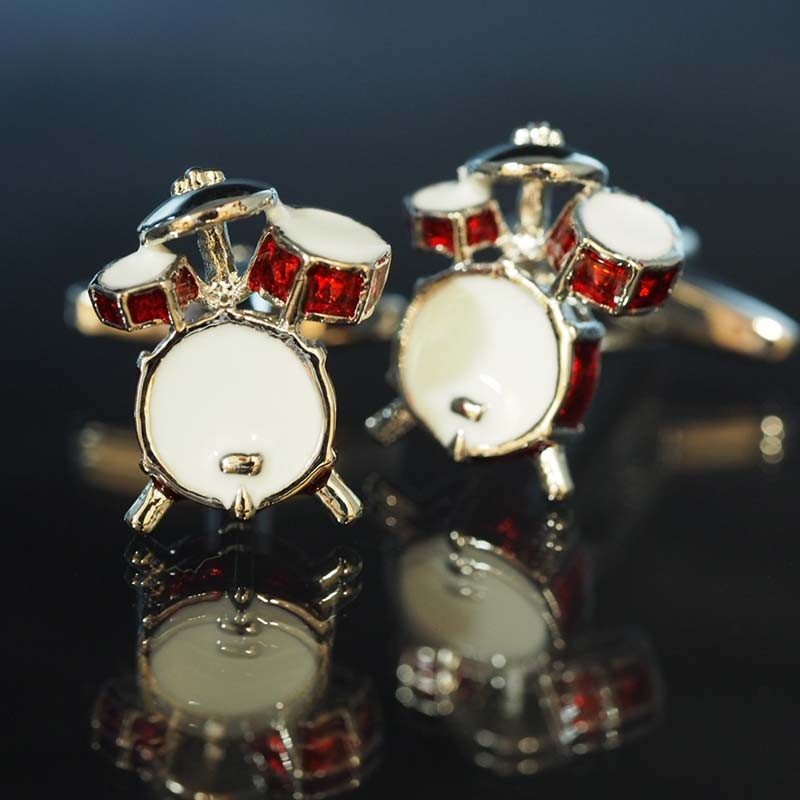 カフスボタン 結婚式 ビジネス スーツ シャツ シルバー ブラック モチーフ シンプル シック 高級感 ドラム 音楽