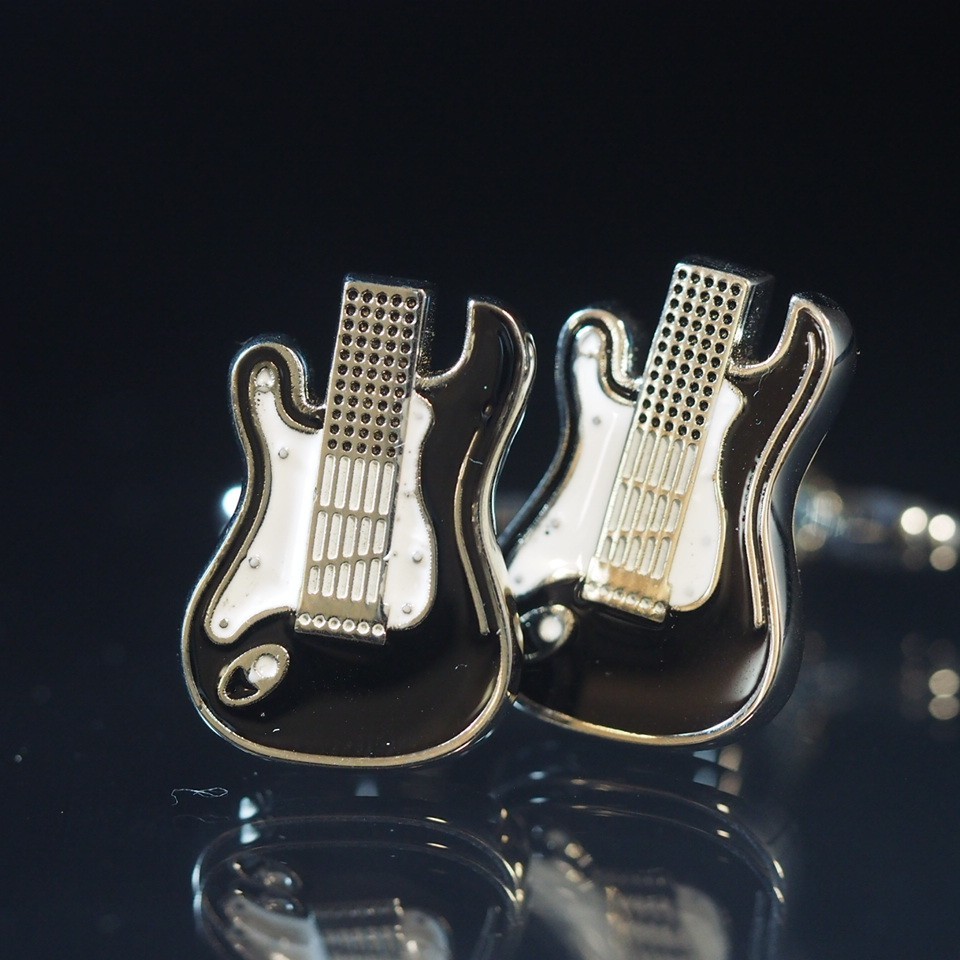 カフスボタン 結婚式 ビジネス スーツ シャツ シルバー ブラック モチーフ シンプル シック 高級感 エレキギター 音楽