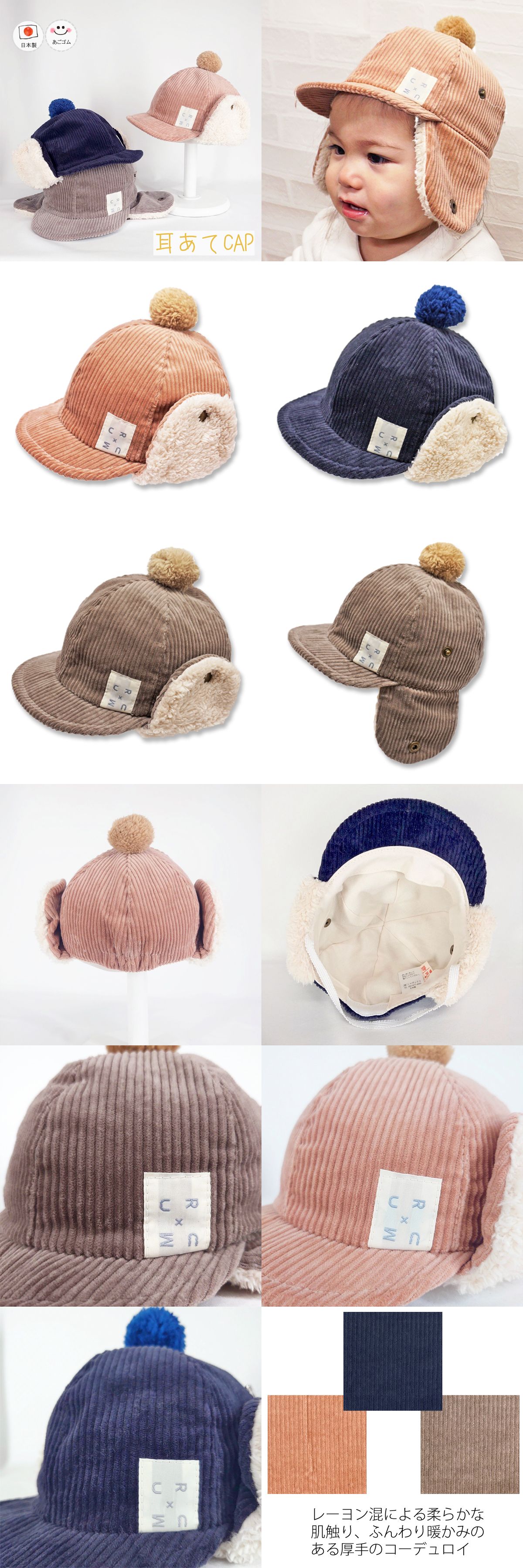 コーデュロイ耳あてボアCAP♪【日本製】ベビー&キッズ/子供帽子/あごゴム付/ シャポックス SHAPOX6