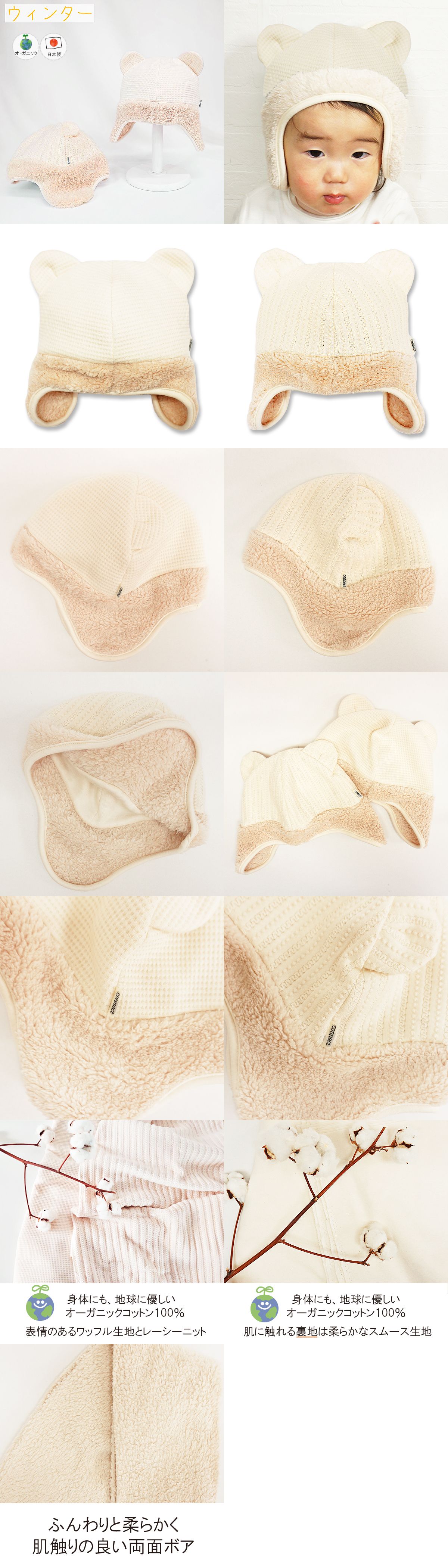 オーガニッククマ耳ウインター♪【日本製】ベビー&キッズ/子供帽子/ シャポックス SHAPOX