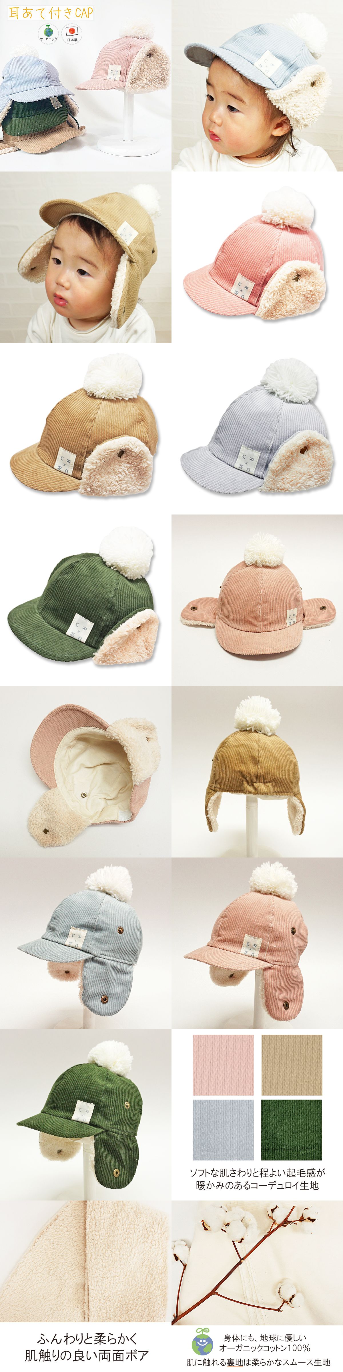 コーデュロイ耳あてボアCAP♪(オーガニック)【日本製】ベビー&キッズ/子供帽子/ シャポックス SHAPOX