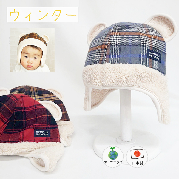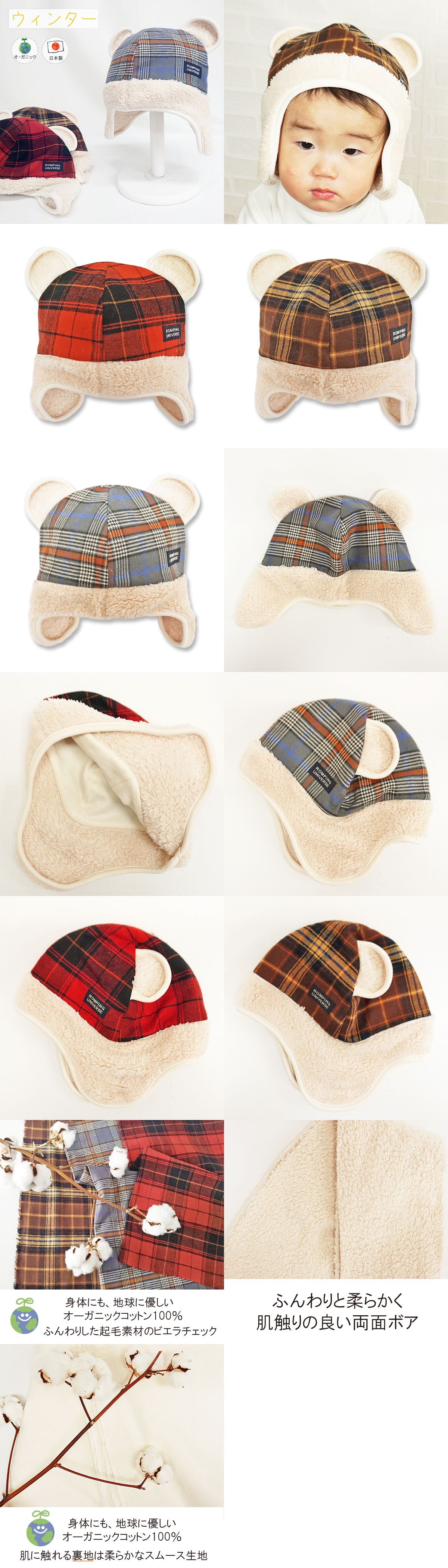 オーガニッククマ耳ボアウインター♪【日本製】ベビー&キッズ/子供帽子/ シャポックス SHAPOX