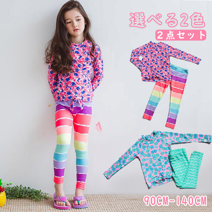 子供水着 女の子 水着 キッズ スクール水着 プール 女児 クルーネック 上下2点セット 長袖 レギンス 日焼け防止 スイムスーツ 授業 ジュニア UV対策 M 5L 4XL