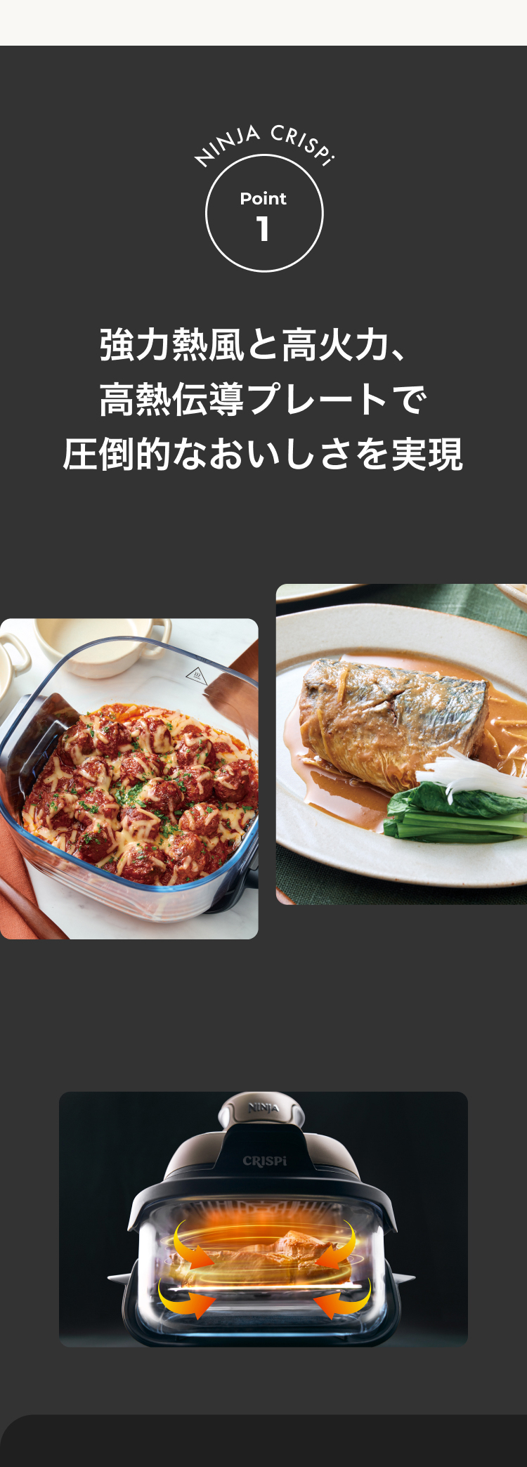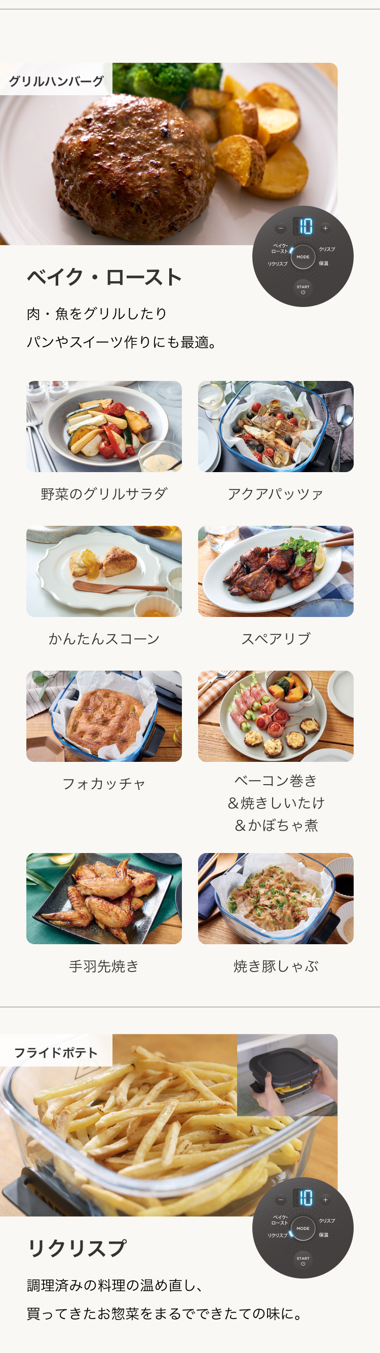 強力熱風ファン、高火力ヒーター、高熱伝導プレートで食材を包み本格的な仕上がりに。