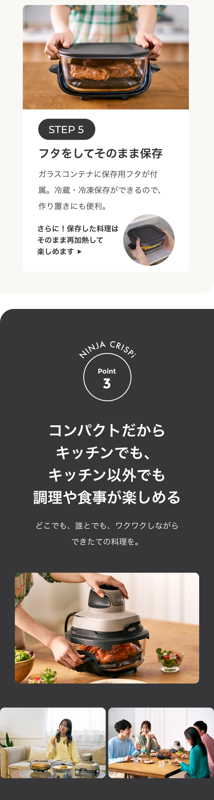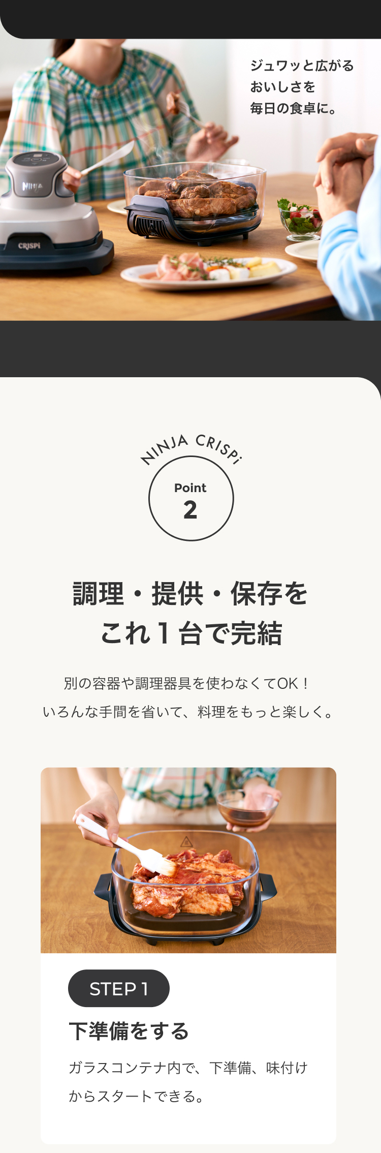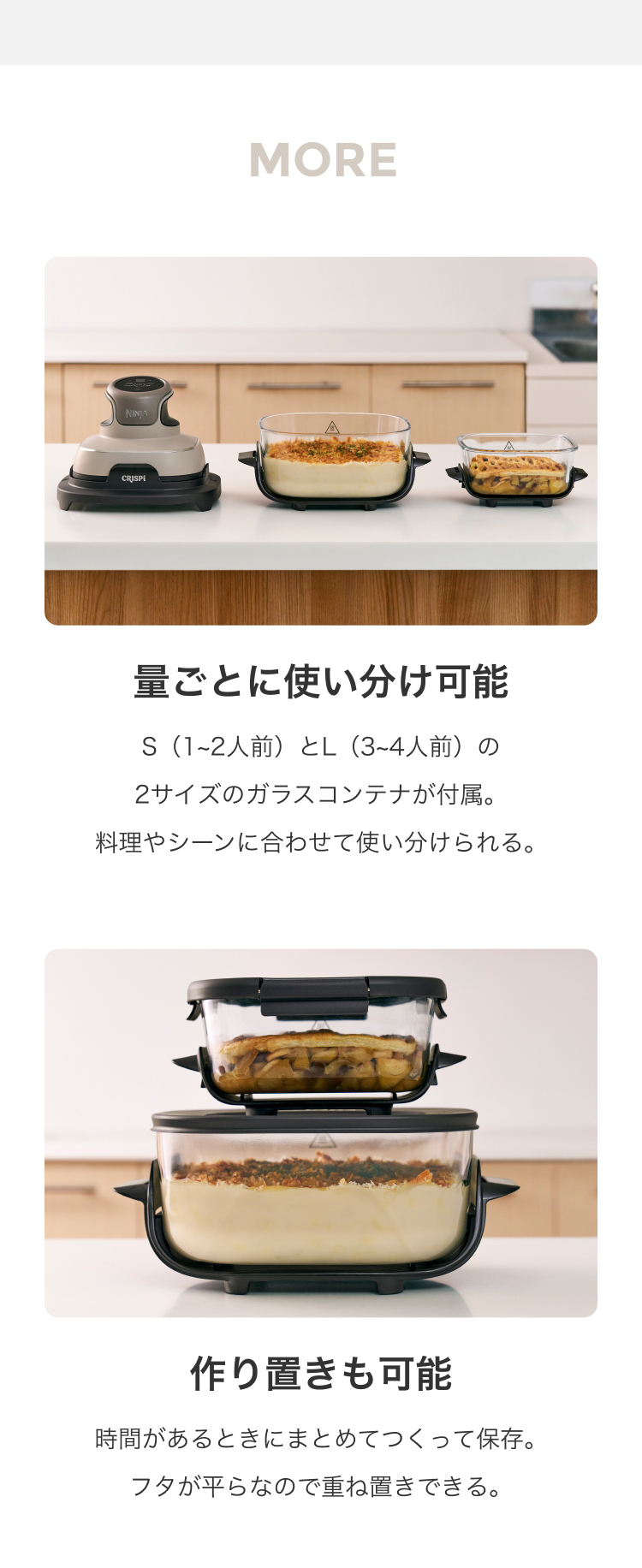 ガラスコンテナに食材を入れて、そのまま調理、サーブし、保存もできる新感覚テーブルクッカー。