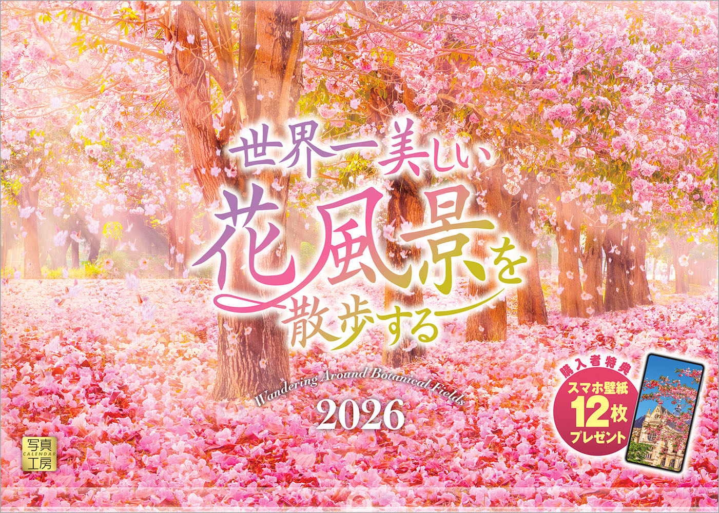 写真工房カレンダー | 世界一美しい花風景を散歩する 2026 カレンダー 壁掛け 風景 【透明ホルダー付 300×420】スマホ壁紙12枚付 YA-03