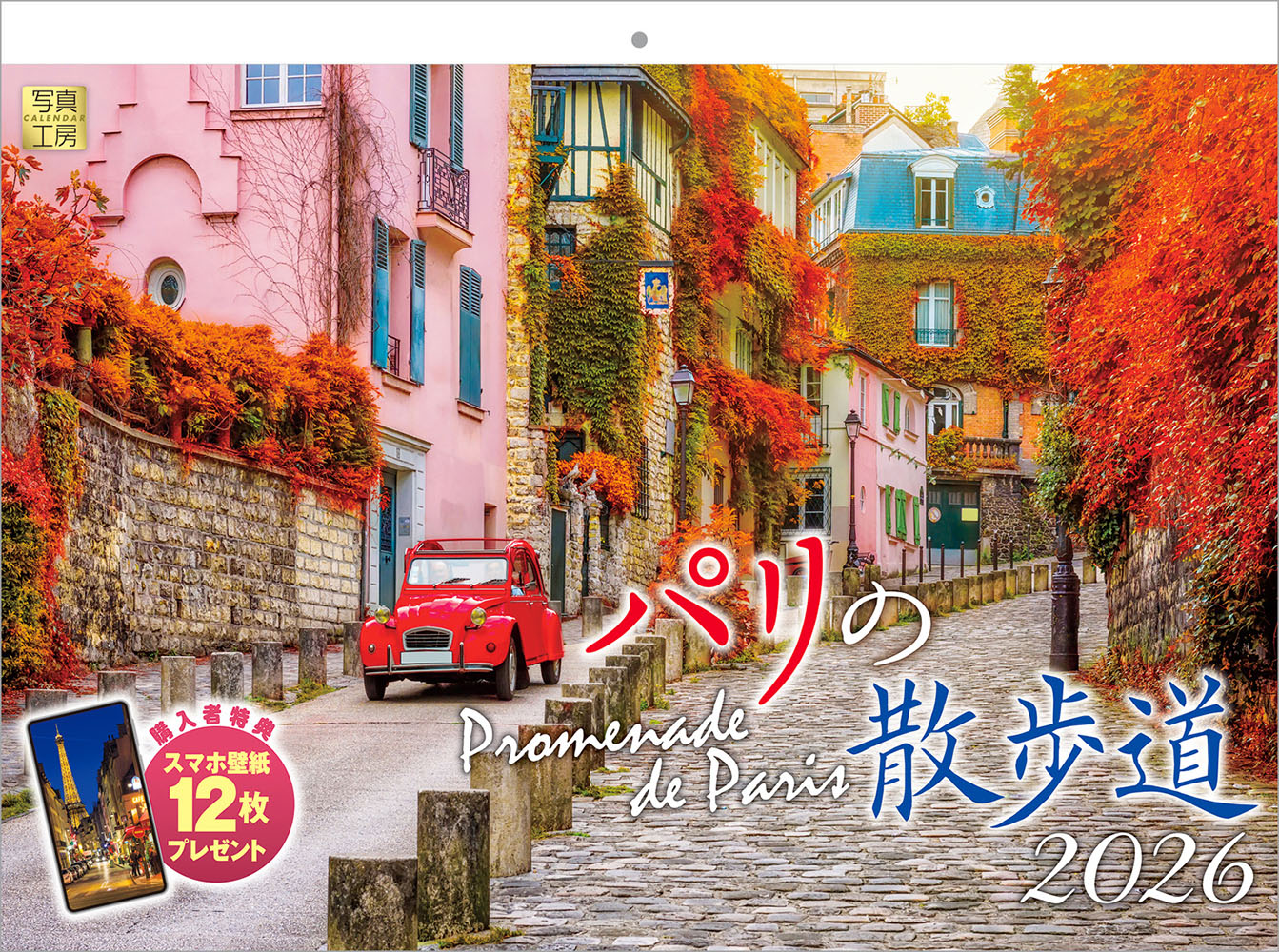 写真工房カレンダー | パリの散歩道 2026 カレンダー 壁掛け 風景 【紙ホルダー付 300×400】スマホ壁紙12枚付 YC-08