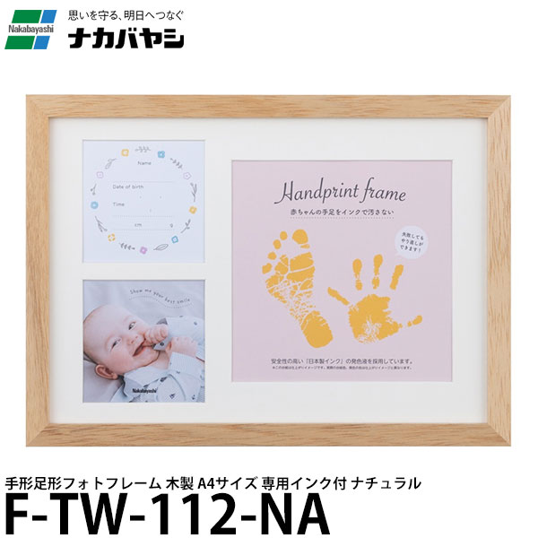 ナカバヤシ F-TW-112-NA 手形足形フォトフレーム 木製 A4サイズ 専用インク付 ナチュラル 【メール便 送料無料】
