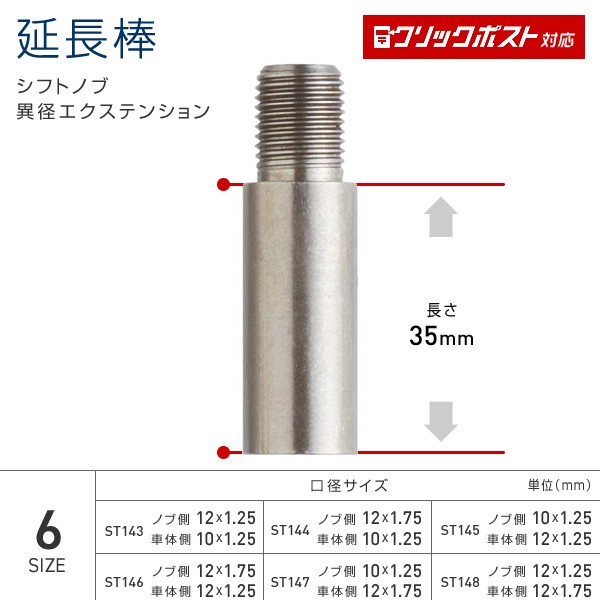 シフトノブ 口径変換 延長アダプター 延長棒 ストレート型 長さ35mm 異型 エクステンション トラック・カー用品 クリックポスト対応