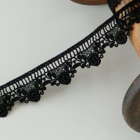 ケミカルレース 黒 23mm 50cm単位 日本製 服飾資材 手芸 薔薇 リボンが通せるレース 日本製