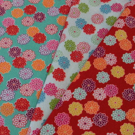 ちりめん 生地 和柄 菊 花柄 10cm単位 4色 日本製 洋裁 服地 手芸 はいから 小菊 ポップ 華やか かわいい 小柄 ポリエステル 二越ちりめん 暖簾 風呂敷