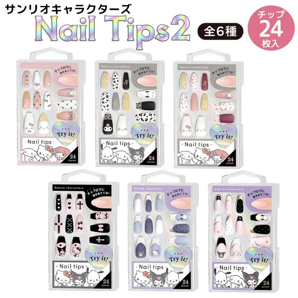 サンリオキャラクターズ 簡単 貼るだけ ネイルチップ2 立体パーツ 24枚入 1個 粘着シール ネイル アレンジ シンプル 全6種から選択