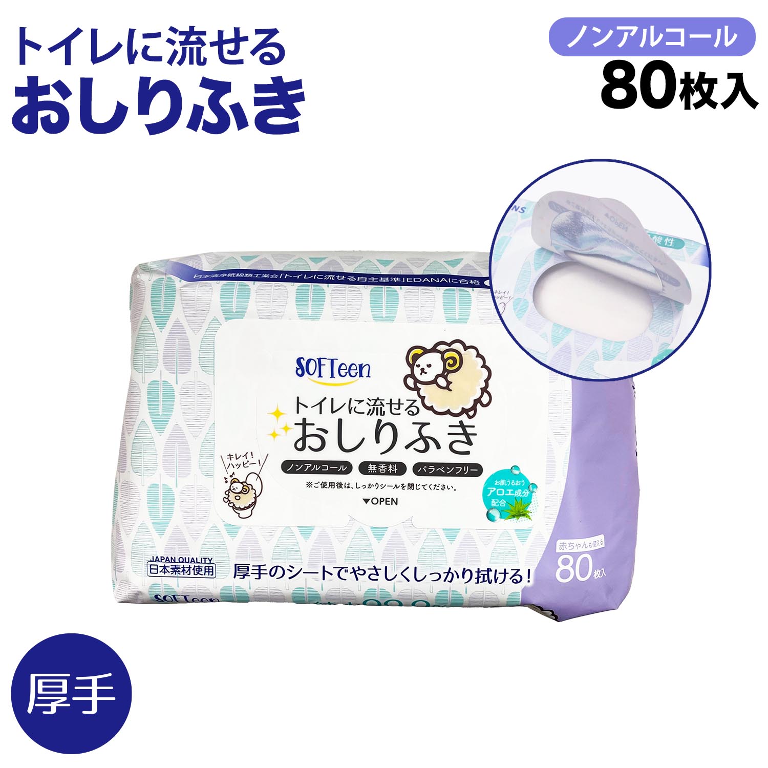 【トイレに流せて便利】・たっぷり使える80枚入り。