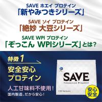 【特徴】SAVEぞっこんWPIシリーズは、人工甘味料不使用で、乳酸菌・ビフィズス菌・ビタミンを配合した機能性プロテインです。