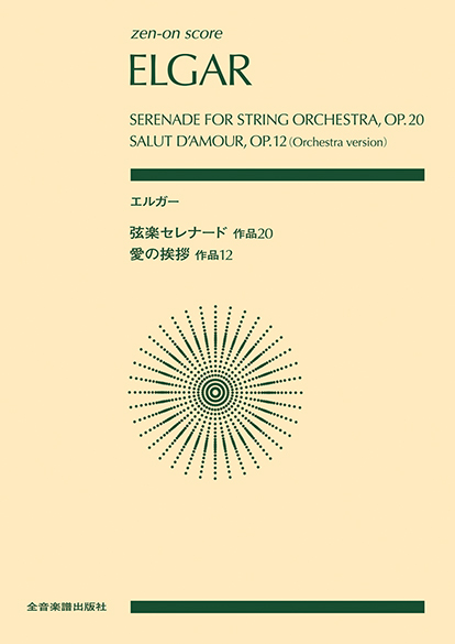 「愛の挨拶」は1889年に夫人へ婚約の贈り物として、「弦楽セレナード」はその3年後の結婚記念日のために作曲されました。「弦楽セレナード」は弦楽オーケストラの定番レパートリーで、学校の弦合奏の授業でも演奏されています。有名な「愛の挨拶」は、ここでは小編成のオーケストラのためのスコアを収めています。解説は英国エルガー協会の正会員である等松春夫氏。