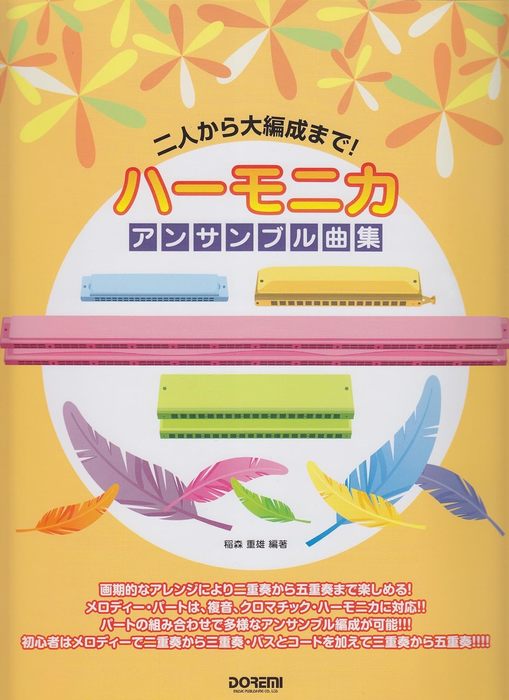 ハーモニカの合奏曲集です。メロディ・パート(複音、クロマチック・ハーモニカなど)と伴奏パート(バス、コード・ハーモニカ)のアレンジで、パートの組み合わせによって二重奏から五重奏までのアンサンブルが可能です。パートの難易度にバリエーションを持たせてありますので、初心者、上級者問わずお楽しみ頂けます。
