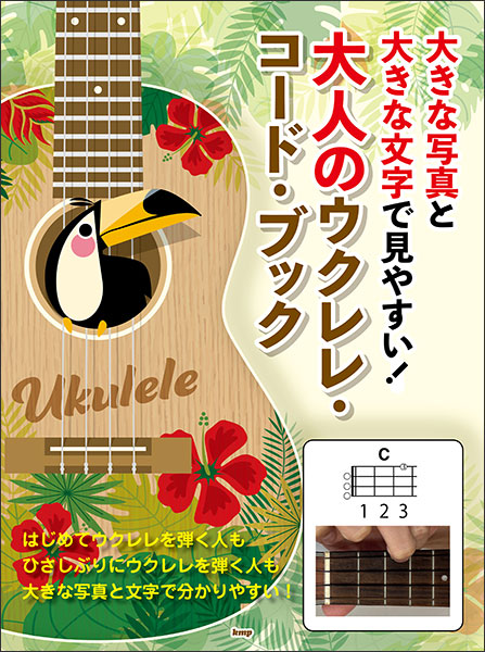 大きな写真と大きな文字で分かりやすくコードを紹介!初心者にも分かりやすいウクレレ・コード・ブックです。