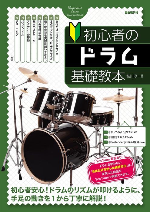 ドラムのビートを叩けるように、1から丁寧に解説した教則本。手足の動作を一つずつ解説していくので、ドラムの経験が全くない初心者でも安心。その他、フィルインの入れ方、スティックの握り方、チューニングの仕方、パラディドル等、内容も充実。巻末ではJ-popのヒット曲を掲載しているので、楽しみながら練習できる。