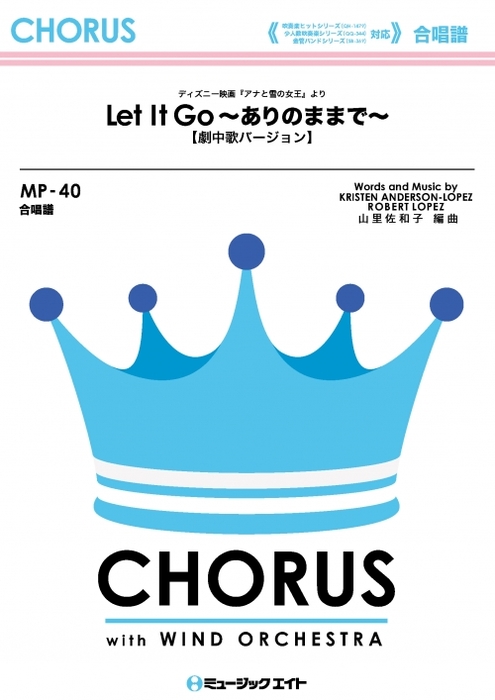 ディズニー映画史上でも空前の大ヒットとなっている『アナと雪の女王』。劇中歌『Let It Go(ありのままで)』の3つのバージョン(オリジナル・日本語吹き替え・日本版エンドソング)がチャートの上位を独占しています。ストーリー中で歌われるバージョン(日本語吹き替え版は、松たか子による)をベースにしたアレンジです。【吹奏楽(QH1479)と少人数吹奏楽(QQ344)と金管バンド(SB369)と一緒に歌える合唱譜(2声)】この合唱譜は、松たか子が歌う劇中歌に基づいてアレンジされており、一緒に演奏できる吹奏楽譜(商品番号:QH-1479)、少人数吹奏楽譜(商品番号:QQ-344)、金管バンド譜(商品番号:SB-369)をご用意しております。キー : Ab