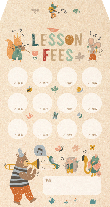 月謝袋(PRFG-609)/森のオーケストラ(1セット10枚入り/外寸:12cm×20cm)