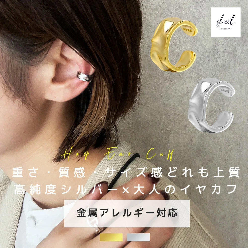 イヤーカフ 付け方簡単 片耳 金属アレルギー 小ぶり 小さめ 高純度シルバー 片耳 925シルバー ゴールド K18コーティング イヤカフ 爆買