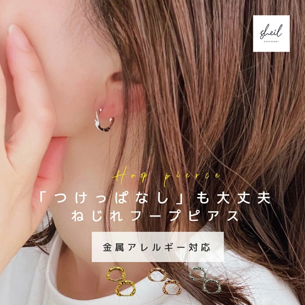 フープピアス ピアス 金属アレルギー つけっぱなし イヤリング 小さめ フープ キャッチレス シルバー ゴールド ニッケルフリー シンプル SHEIL