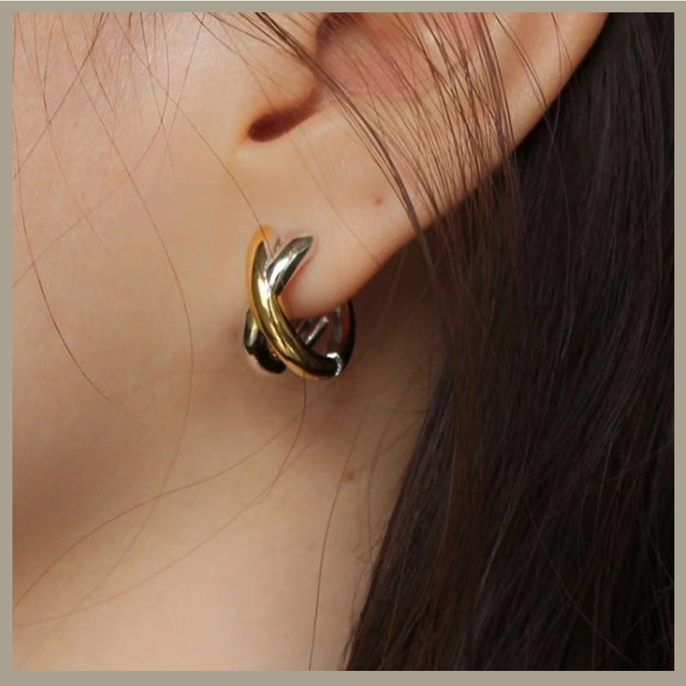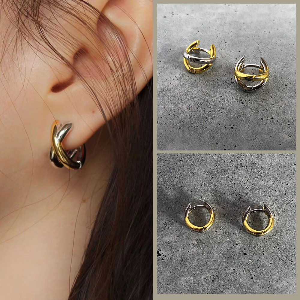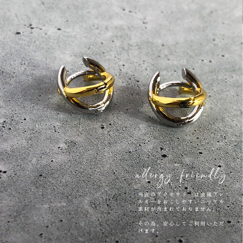 フープピアス ピアス 金属アレルギー レイヤード風 小さめ シンプル シルバー ゴールド 大人 上品 きれいめ 可愛い