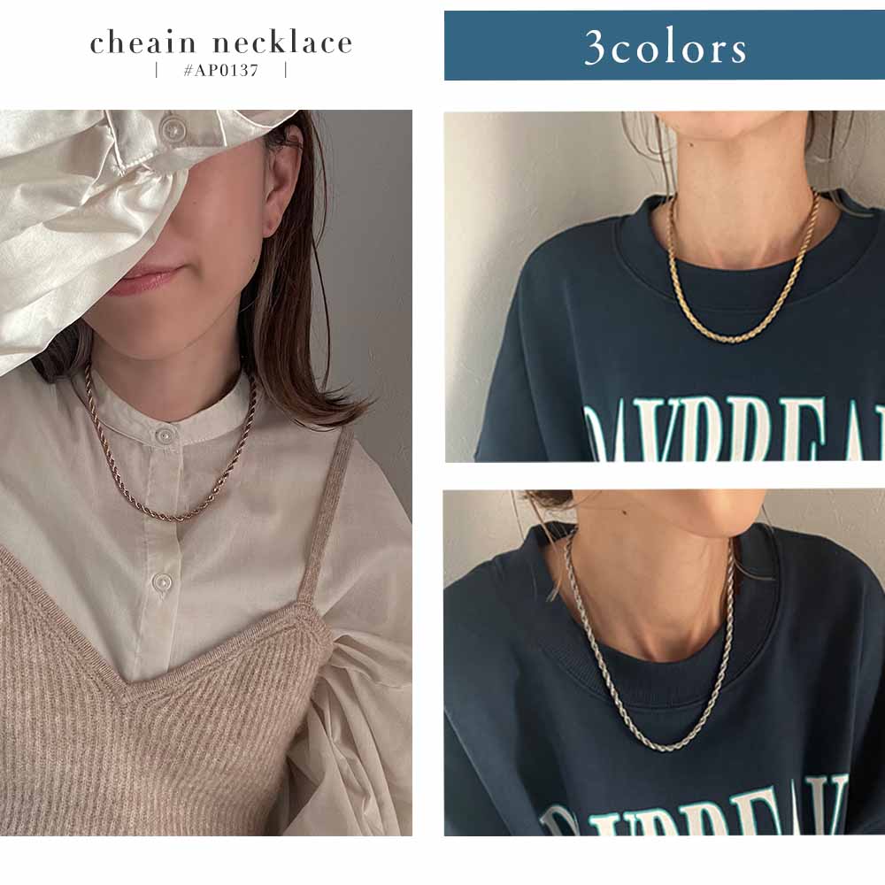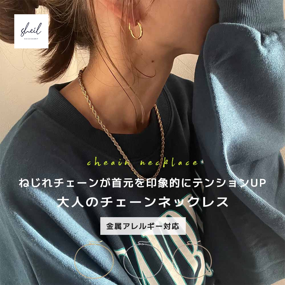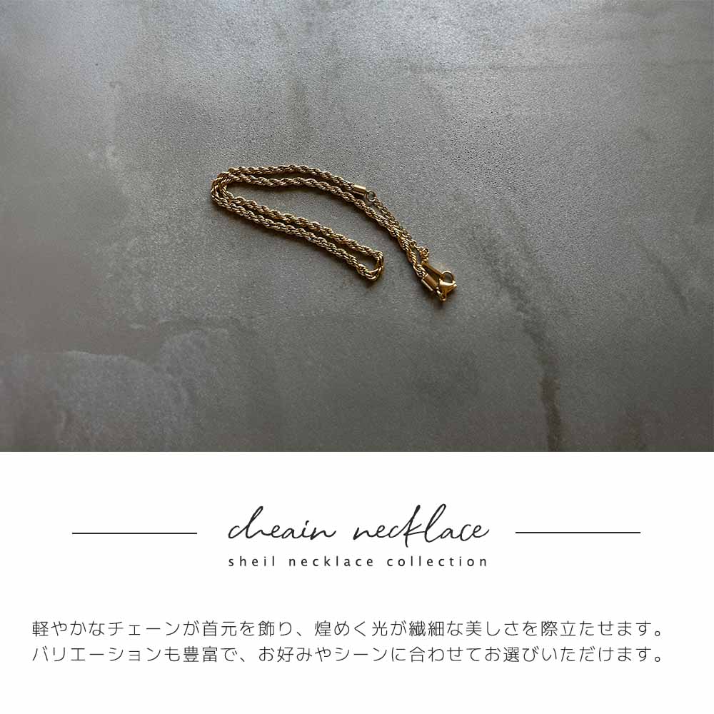 ネックレス チェーン 金属アレルギー レディース チェーンネックレス ロープ ねじれ アジャスター サージカルステンレス つけっぱなし 可愛い 人気 トレンド ギフト プレゼント 彼女 レディース 送料無料 高見え トレンド SHEIL 爆買