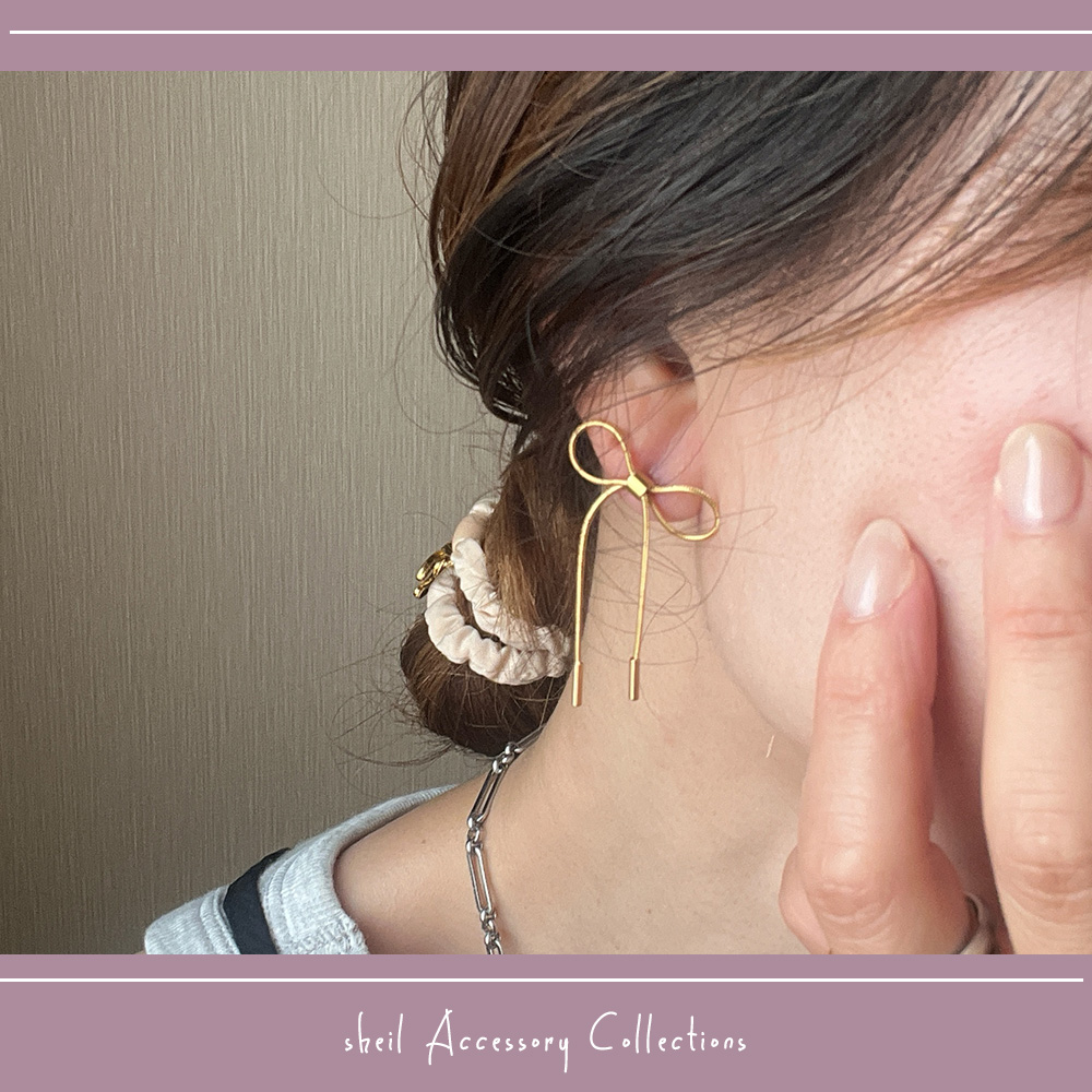 ピアス リボン 金属アレルギー リボンピアス つけっぱなし ステンレス サージカルステンレス スタッドピアス ゴールド シルバー ピンクゴールド 大人 上品 きれいめ 可愛い 人気 トレンド ギフト プレゼント 彼女 高見え ママ ギフト レディース SHEIL