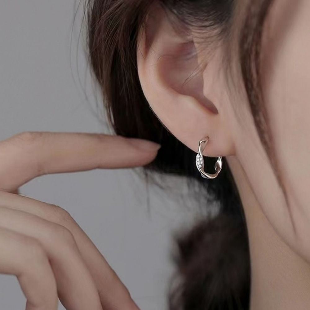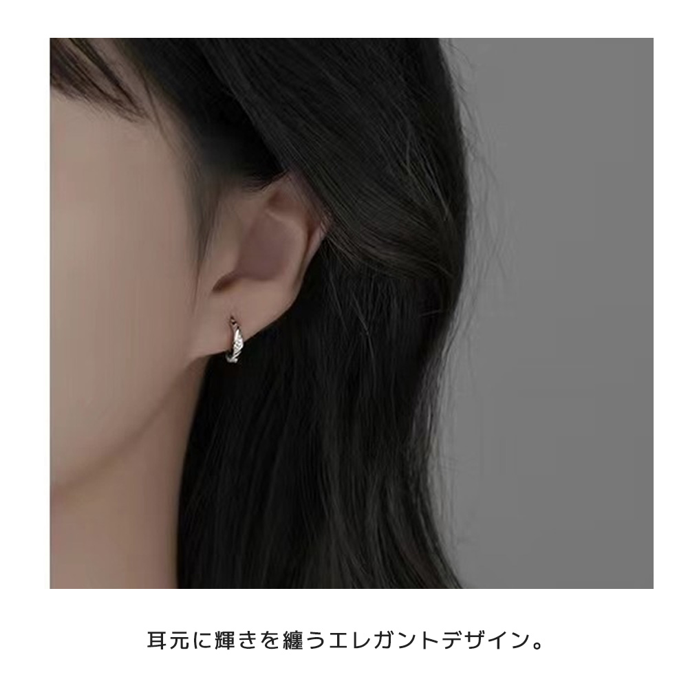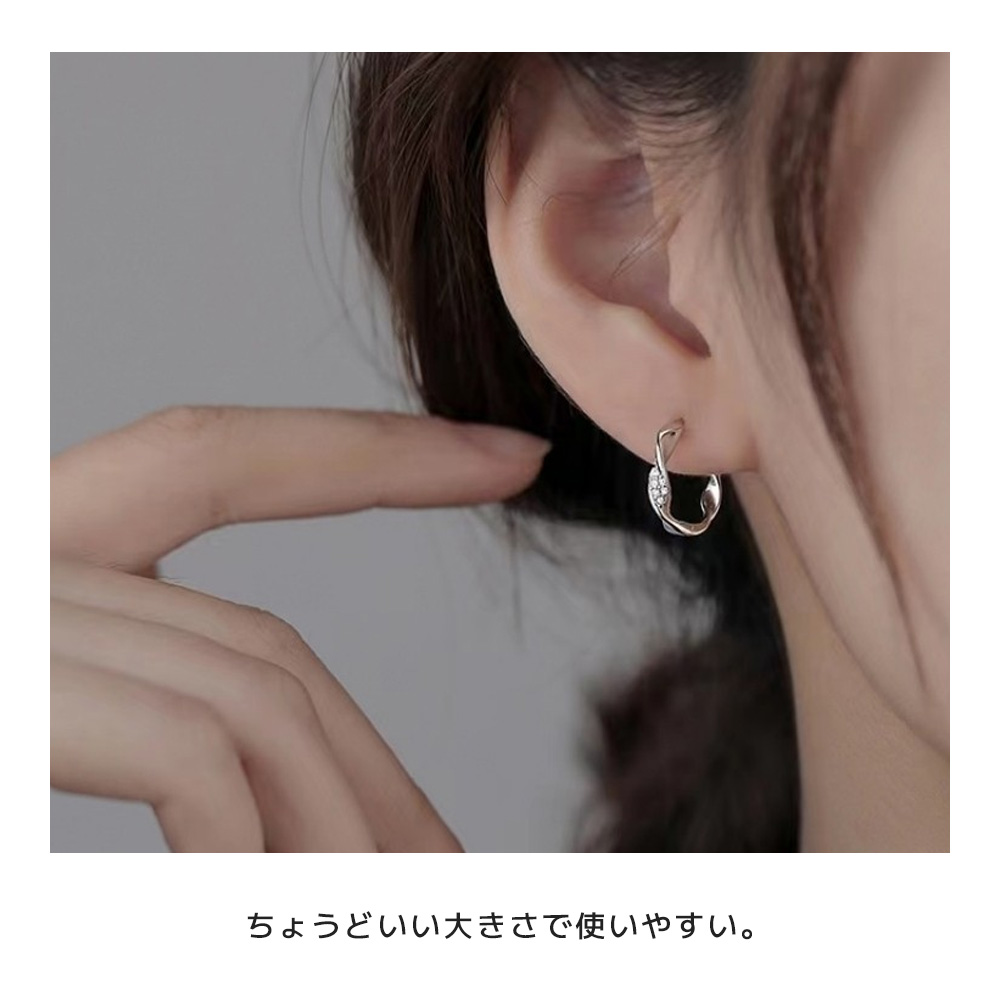 ピアス 金属アレルギー フープピアス ねじれ ダイヤ ジルコニア フープ シンプル ゴールド シルバー ニッケルフリー