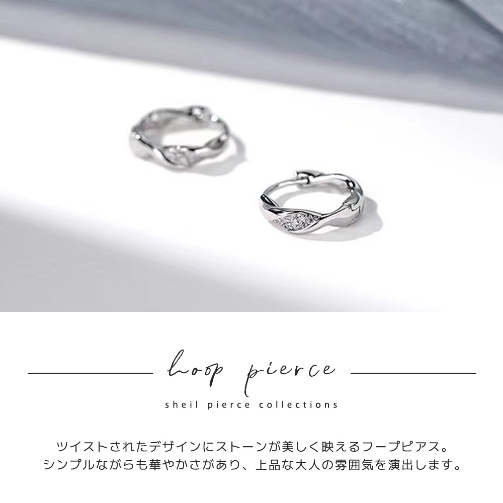 ピアス 金属アレルギー フープピアス ねじれ ダイヤ ジルコニア フープ シンプル ゴールド シルバー ニッケルフリー 大人 上品 きれいめ 可愛い 人気 トレンド ギフト プレゼント 30代 40代 50代 レディース 高見え SHEIL