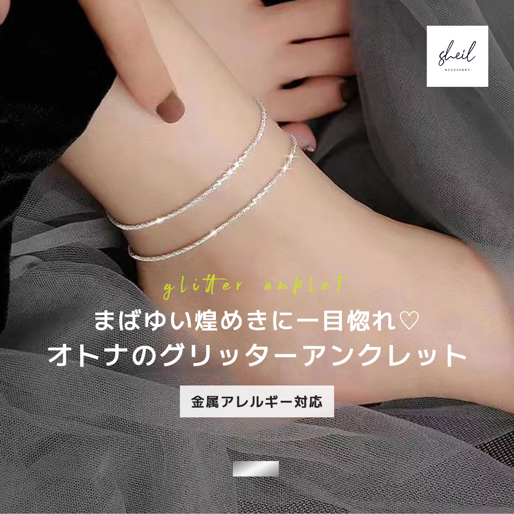 アンクレット 金属アレルギー グリッター きらきら 重ね付け チェーン 小ぶり 細見 華奢 ゴールド ニッケルフリー 大人 上品 きれいめ 可愛い 人気 トレンド ギフト プレゼント 彼女 レディース SHEIL