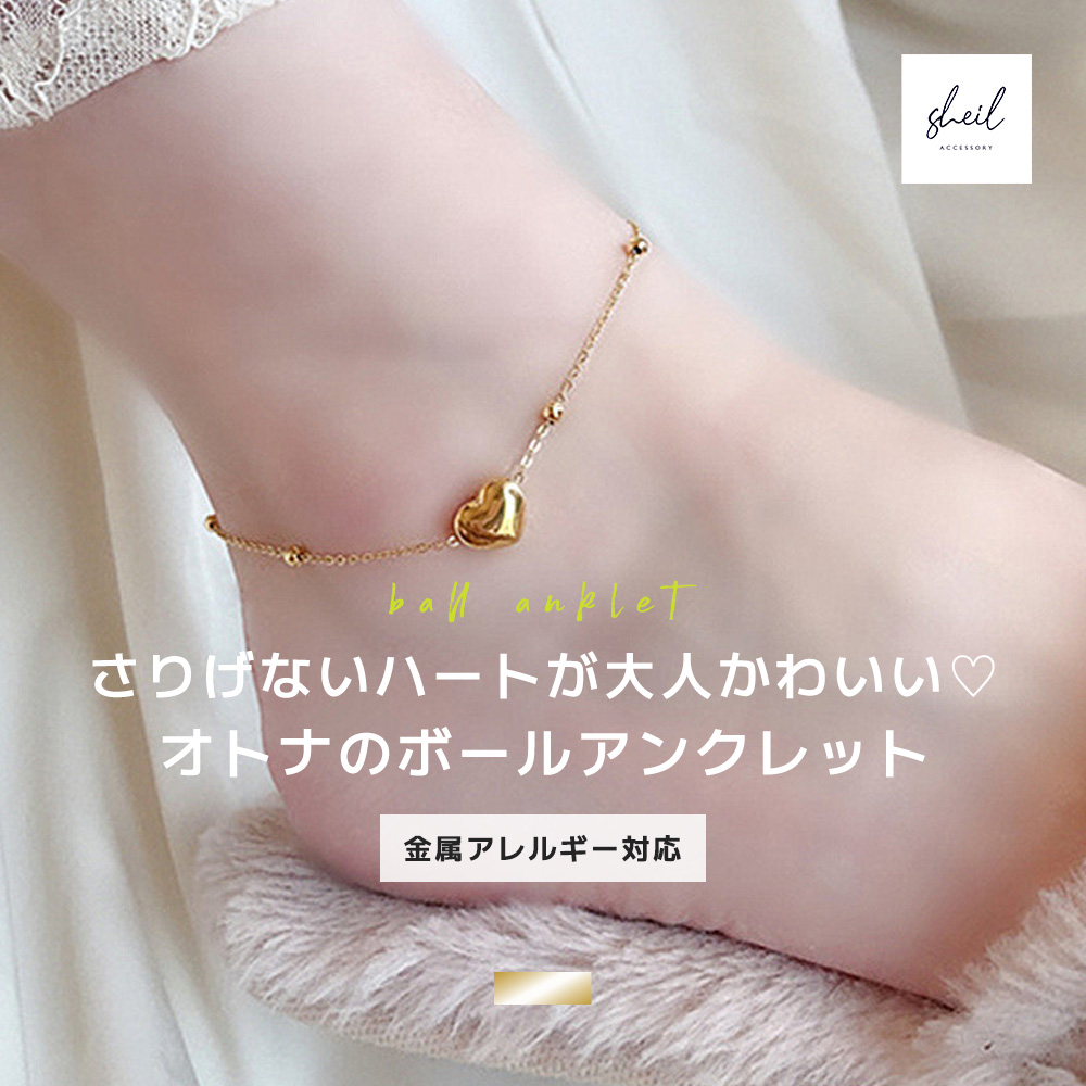 アンクレット 金属アレルギー つけっぱなし ハート チェーン 小ぶり 華奢 ゴールド ピンクゴールド サージカルステンレス 大人 上品 きれいめ 可愛い 人気 トレンド ギフト プレゼント プール 海 30代 40代 50代 レディース SHEIL