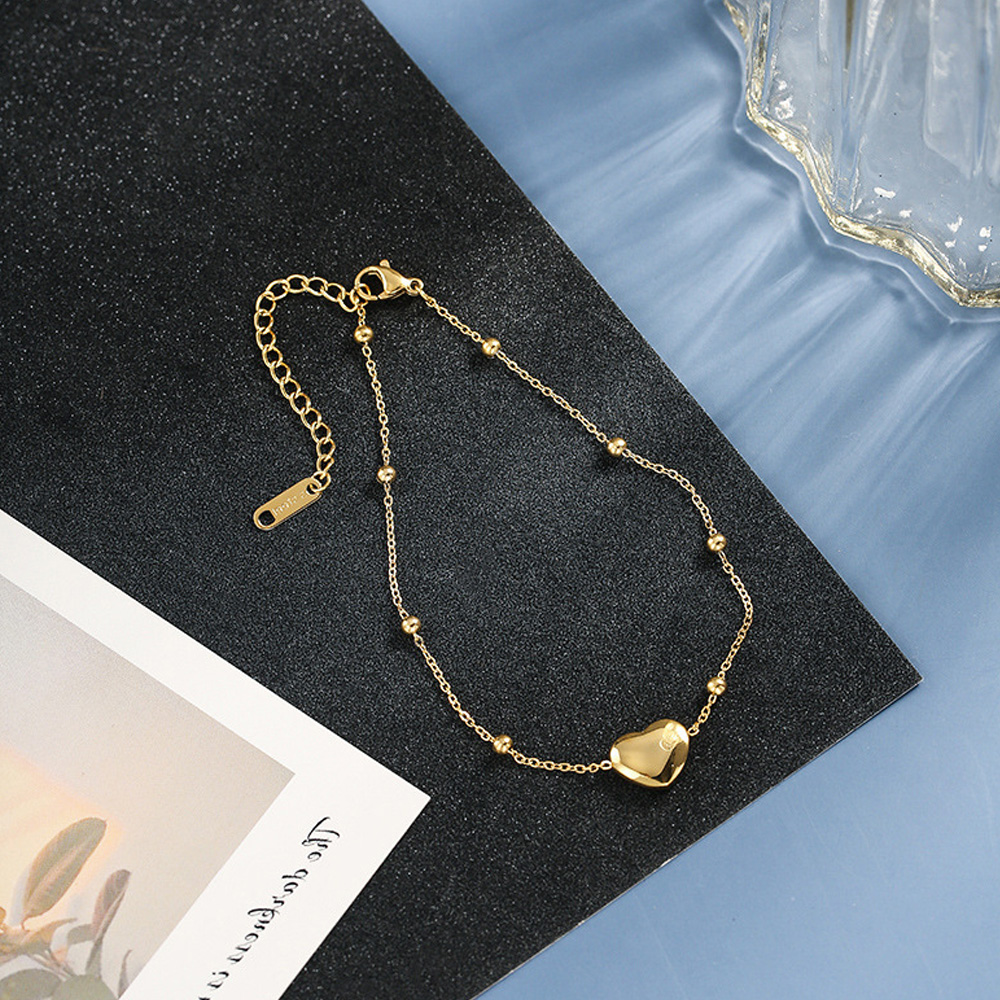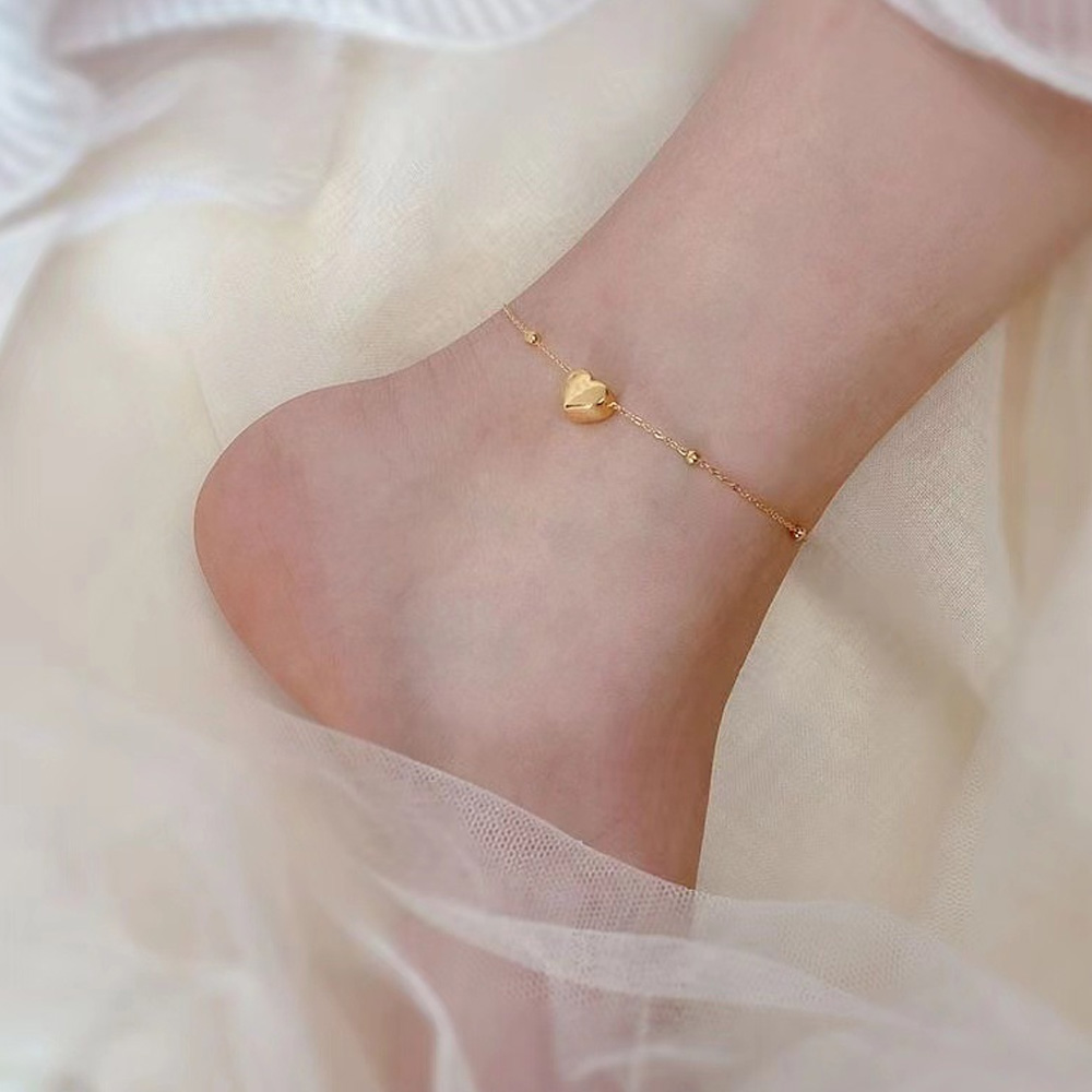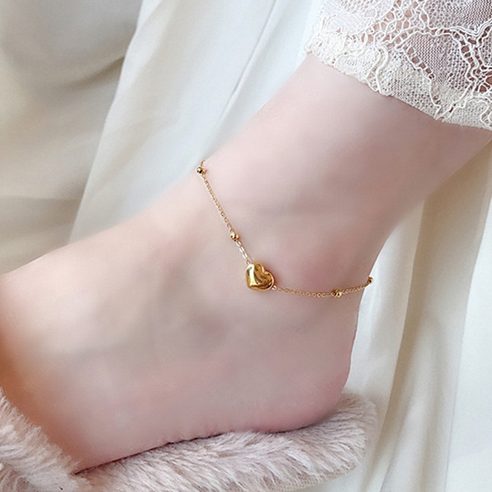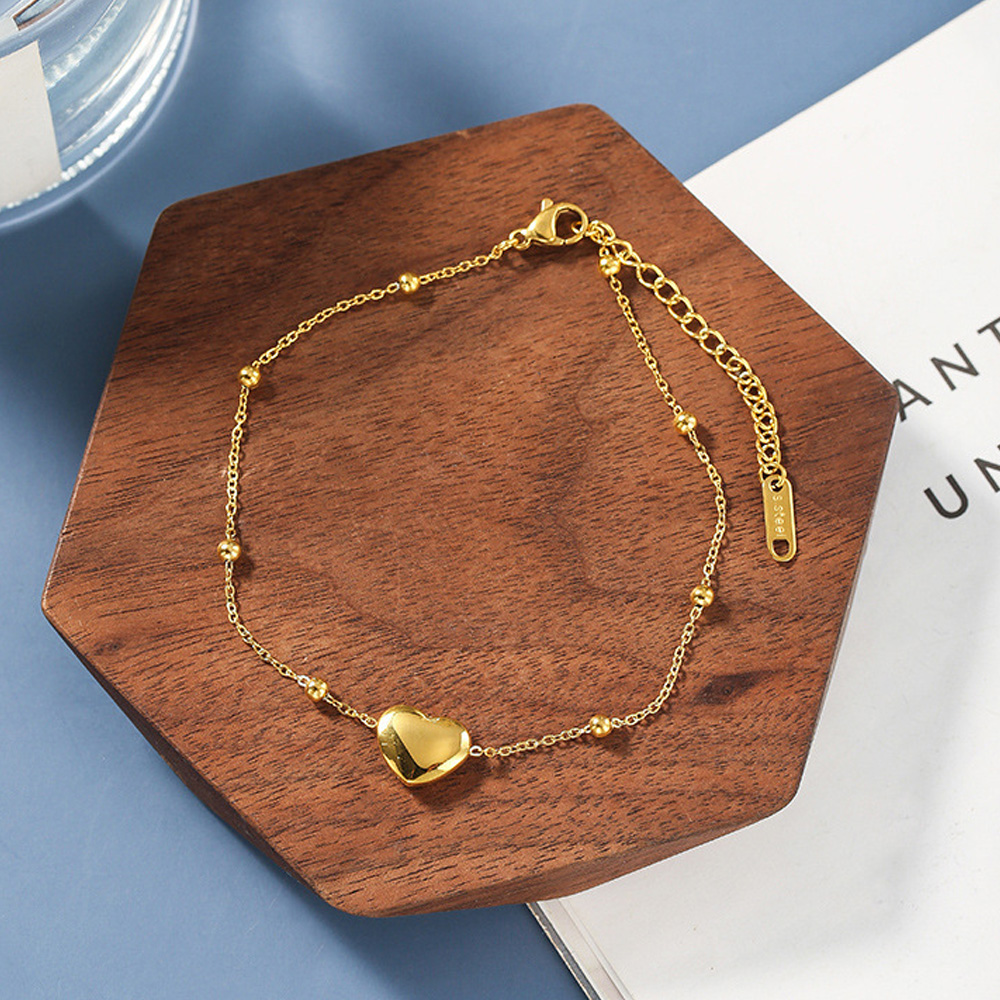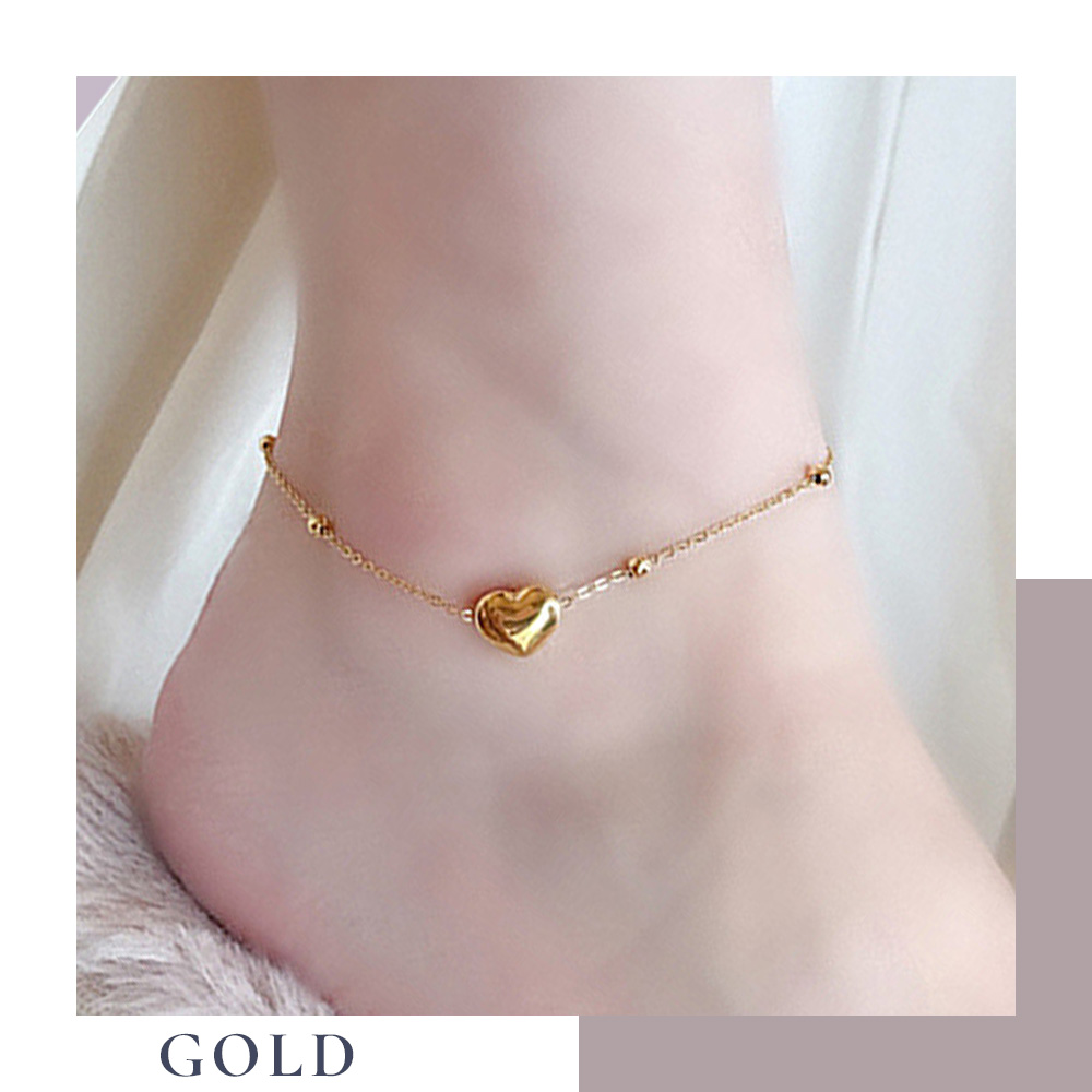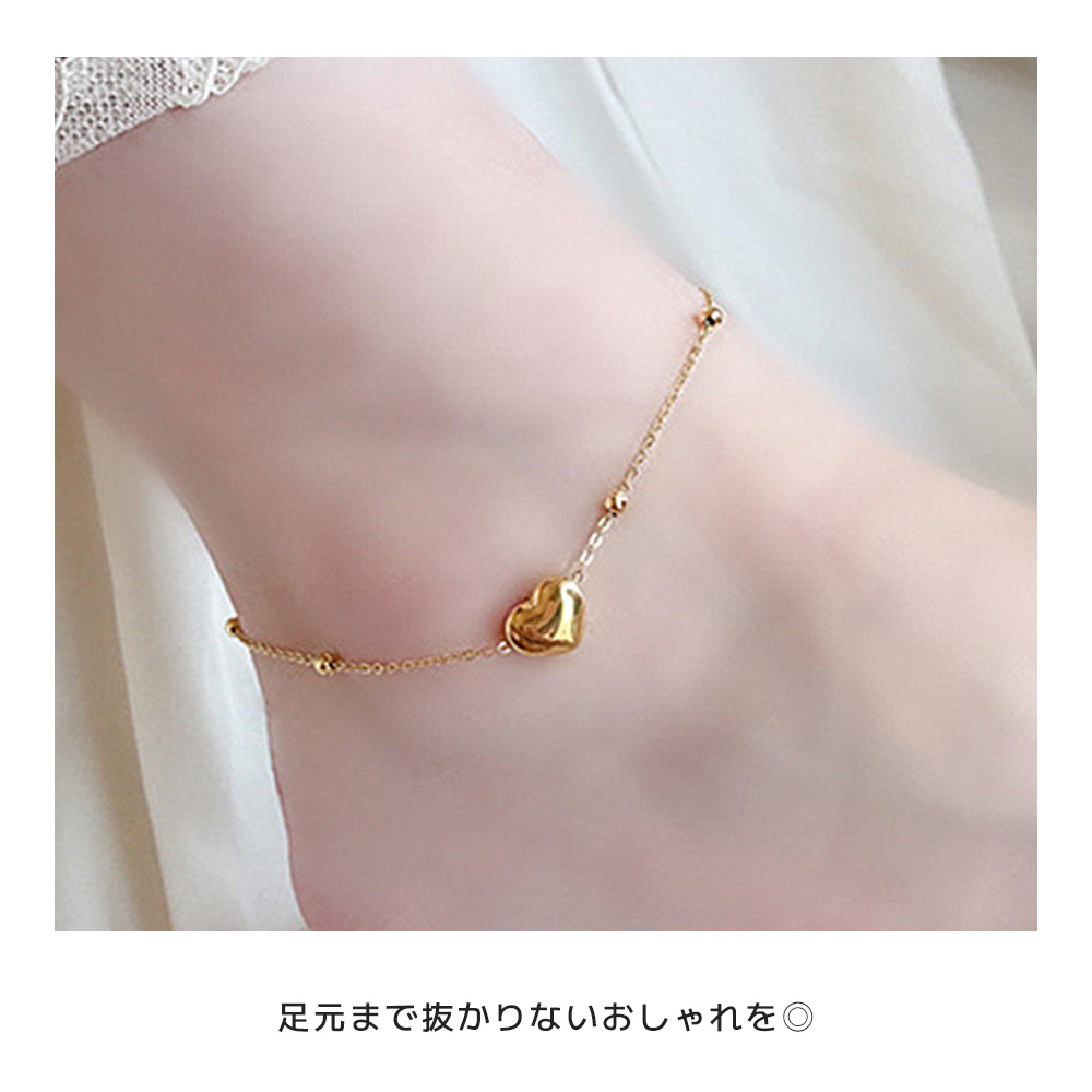 アンクレット 金属アレルギー つけっぱなし ハート チェーン 小ぶり 華奢 ゴールド ピンクゴールド チタン 大人 上品
