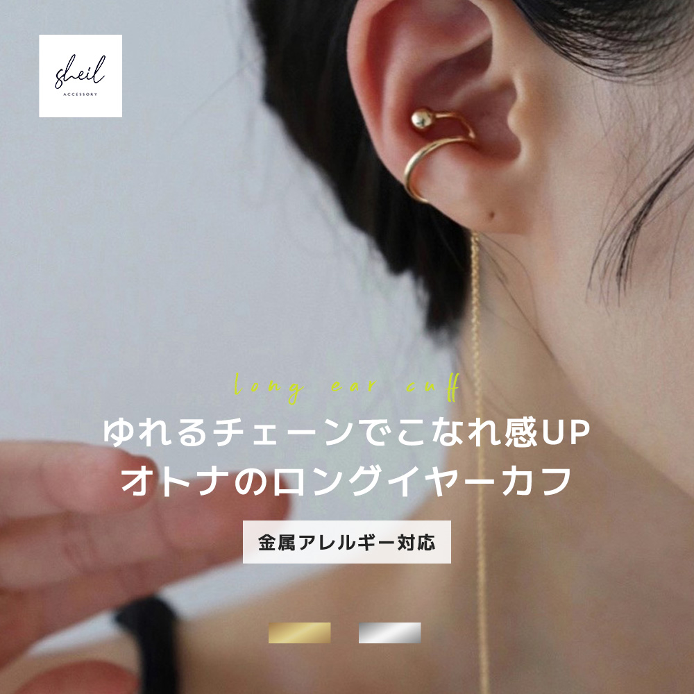 イヤーカフ 金属アレルギー ロングチェーン イヤカフ 片耳用 14Kコーティング レディース 大ぶり シンプル 大人 上品 可愛い 人気 トレンド ニッケルフリー 30代 40代 50代 60代 金属アレルギー対応 きれいめ 可愛い プレゼント 妻 母親 彼女 大人 SHEIL 爆買