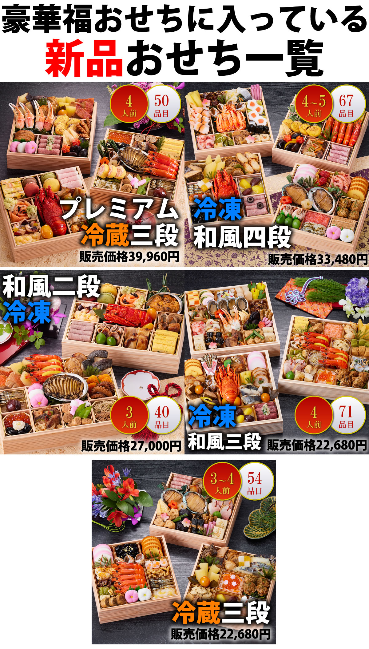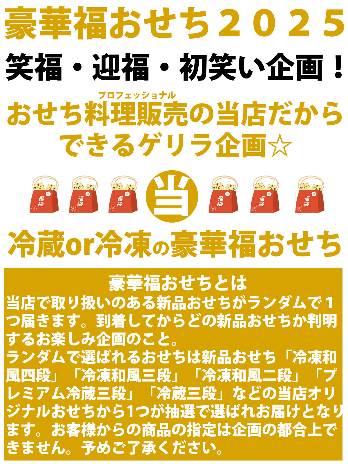 【冷蔵は12月31日着、冷凍は12月30日着です。平均29,160円のおせち5種類から1種類が当たる】豪華福おせち【どのおせちが届くかは到着してからのお楽しみ!】