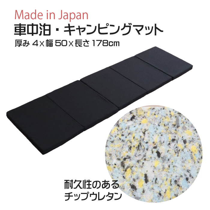 日本製 軽自動車に最適 車中泊 マット 幅 50cm 厚さ 4cm 178cm 超硬質 高弾力 高密度 高反発 チップウレタン アウトドア キャンプ 洗える 楽 5S-569BK-chip