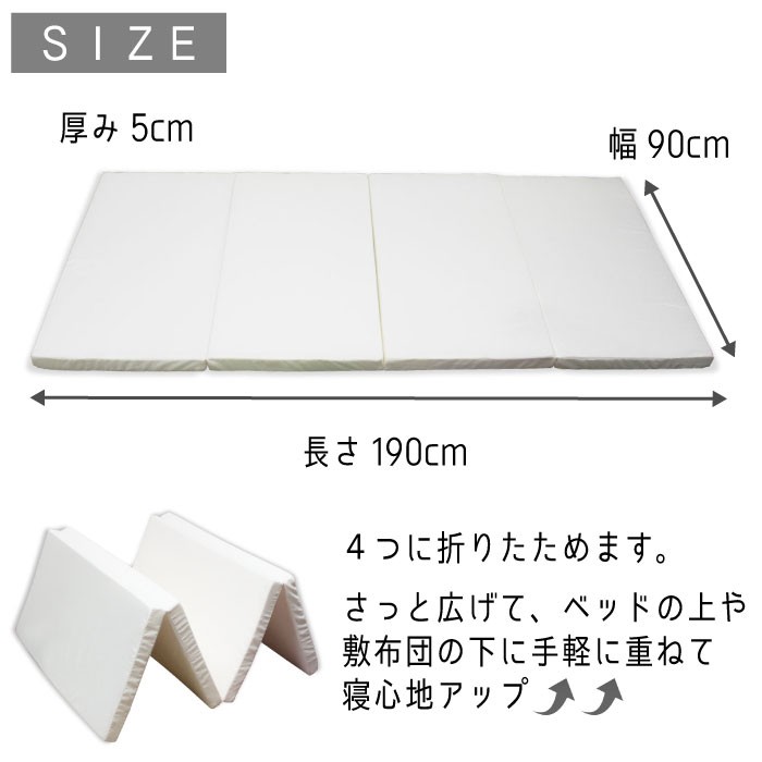 日本製 4つ折りマットレス 厚み5cm シングル 品質に自信 軽量 コンパクト収納 ふつう 95ニュートン 車中泊 折りたたみマットレス 工場直売 圧縮梱包 4S638