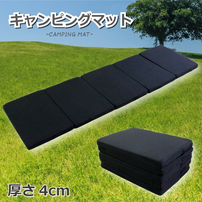 日本製 5つ折り 軽自動車に最適 車中泊 キャンピングマット コンパクト 幅50cm 厚さ4cm 長さ178cm トラック 段差解消 軽量 洗えるカバー 防災 5S-569BK-15M