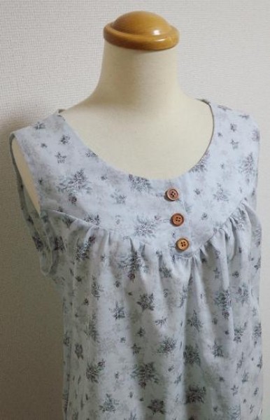 【デザインについて】袖ぐりは腕を上げた時などに横から下着が見えないようにあまり広く取っていません。夏用にワンピースとして着用できるように作っていますので重ね着用にとお考えの方は少し脇を広げる必要があります。ワンサイズ上のサイズで作ってもいいと思います。