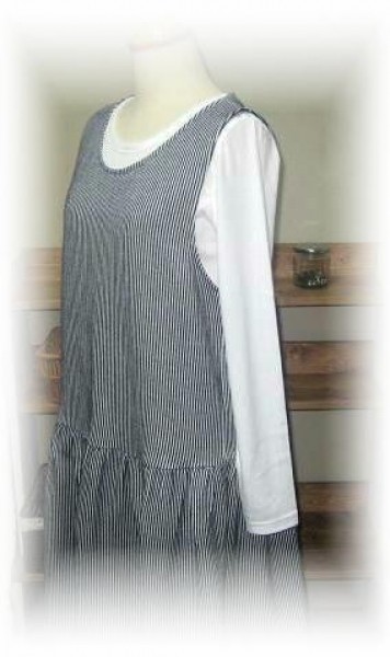 サイズの選び方は、ご自身のバスト寸法(ジャンパースカートなので、下着、Tシャツを着た状態で測ったバスト寸法)+9〜10cmで出た数値が、仕上がりバスト寸法に近いサイズをお選びください。