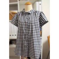 ブロードギンガムチェックは袖にカフスを付けず、3つ折り始末しています。生地以外に必要な材料…接着芯70cm、11.5mm幅ボタン8つ