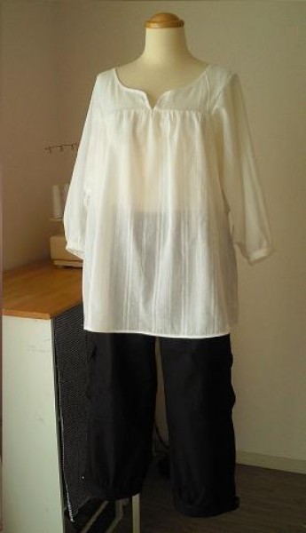 かぶって着る、プルオーバーです☆もう1点のドルマンスリーブとの混同を防ぐため、こちらは「ブラウス」としています。シルエットは似ています。