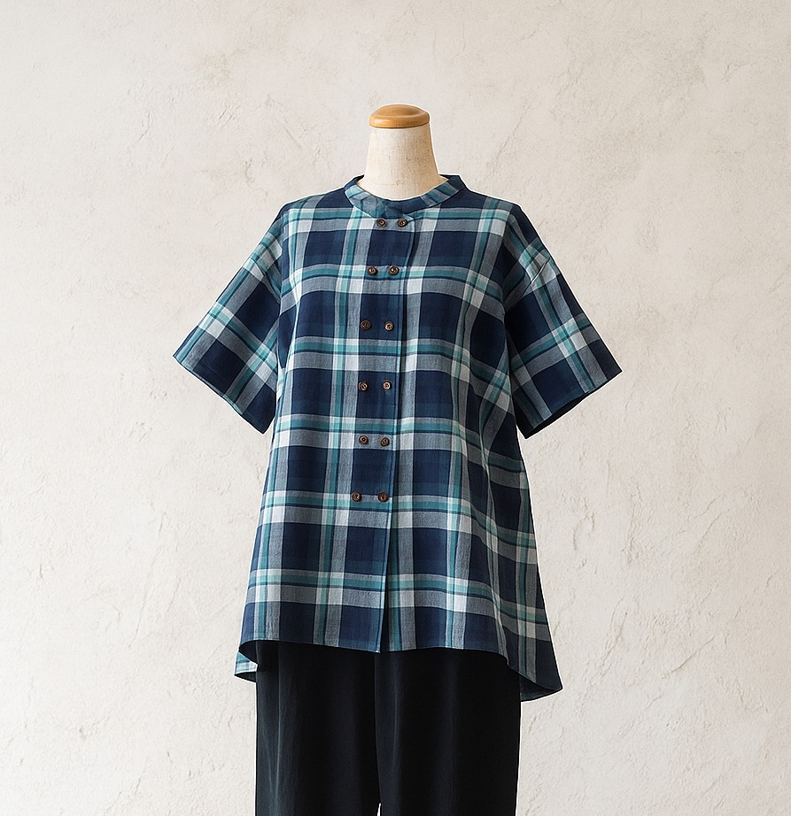 型紙 レディース ダブルボタンのバンドカラーシャツ ゆったり 大人服 M〜5L 図解説付き