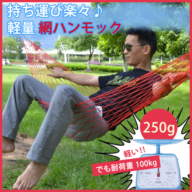 ハンモック 網 全4色 耐荷重100kg やわらか 軽量 紐 ひも アウトドア キャンプバーベキュー室内 ロープ付き Mt.happy/マウントハッピー