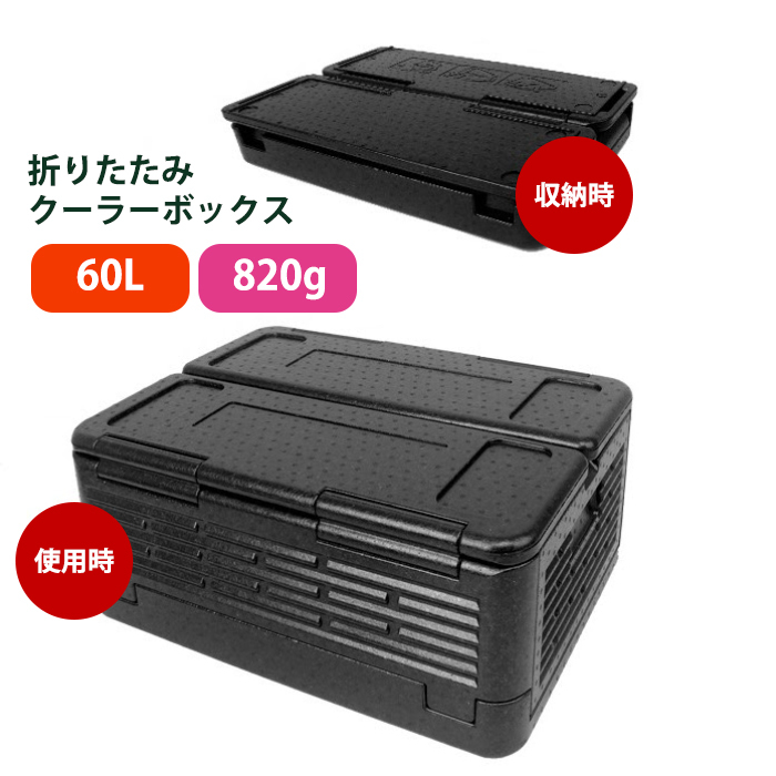 【宅配】折りたたみ クーラーボックス 60L 内容量38.5L 発泡スチロール 箱 820g ブラック 防水 保冷 保温 軽量 釣り ツーリング Mt.happy/マウントハッピー
