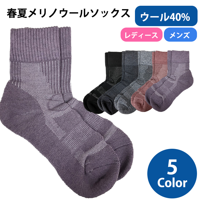 トレッキングソックス 2組セット メリノウール オールシーズン 全5色 サポート ウール 吸汗 抗菌 Mt.happy/マウントハッピー
