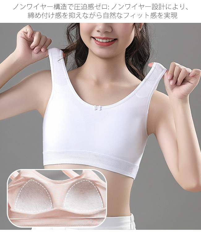 ジュニアブラ ブラジャー スポーツブラ ノンワイヤ 下着 綿 パット付き キッズブラー インナー 青春期 成長期 部活 中学生 子供用 小学生 女の子 爆買